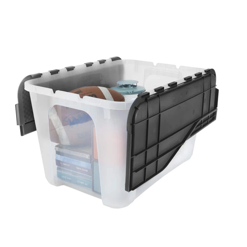This deluxe HDX Flip Top Storage Tote is designed for all your storage needs inside and out. It features an easy open top and 12 Gal. of spacious room to easily and conveniently store most household items, toys, books, files and other accessories efficiently. It features a blue and clear design for a stylish yet functional appeal and for easy visibility of the container’s contents. With a flip top lid that protects your valuables from dust and moisture, this storage tote will provide years of perfect storage space whenever you need it.