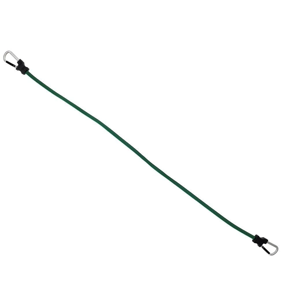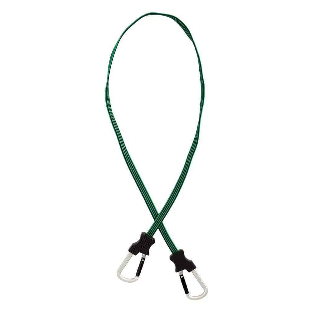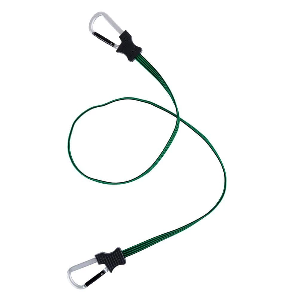 The 48 in. Carabiner Flat Bungee Cord is constructed from strong and durable steel and an UV ray and weather resistant exterior jacket. It is constructed with a spring-loaded closure steel latch at each end to prevent accidental releases, keeping items safe and secured. Inside, premium rubber delivers optimal performance and elasticity for long-lasting repeated use. To operate, simply affix the carabiner hook ends to any anchor points.