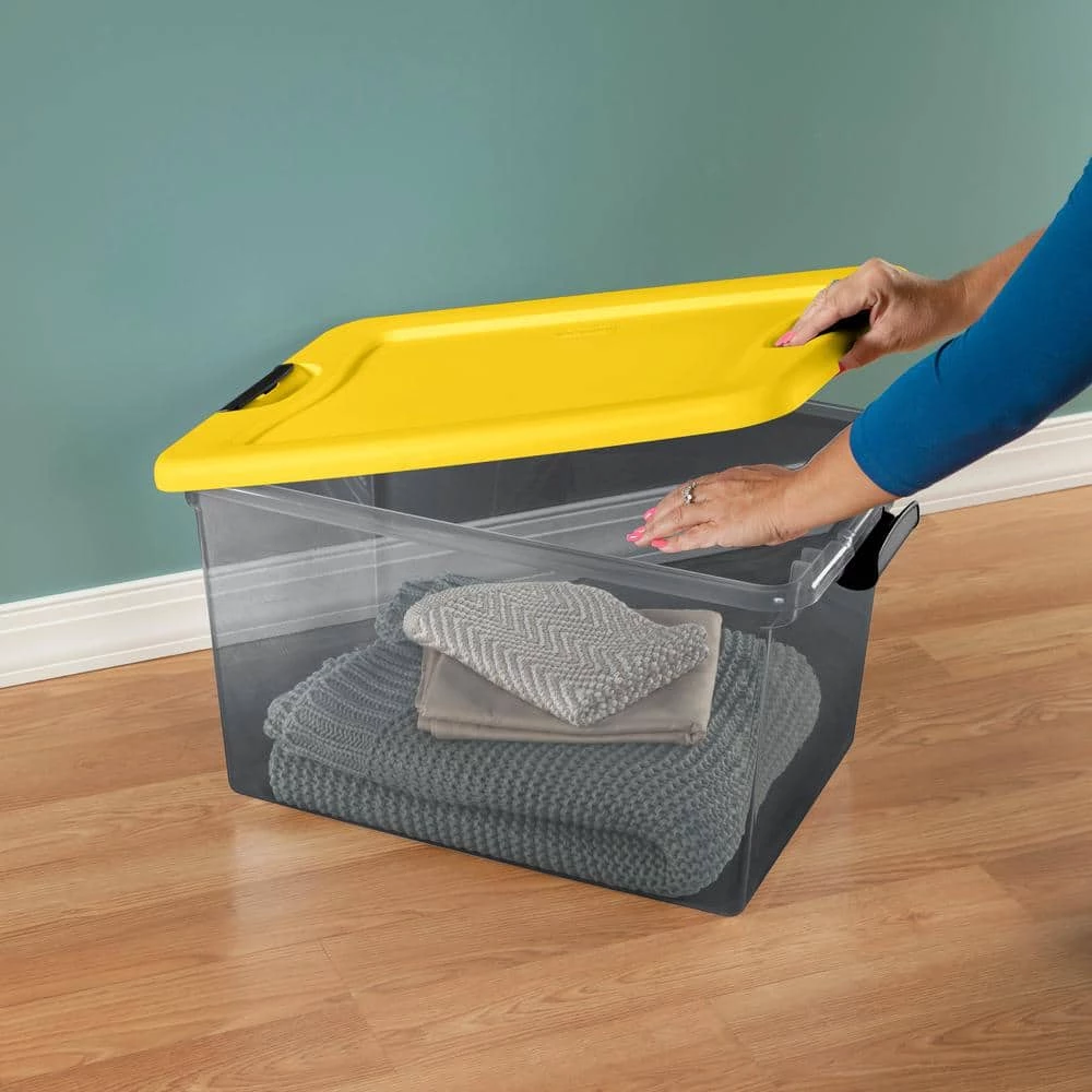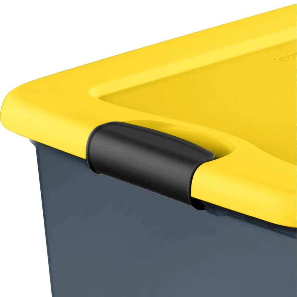 Need help getting organized? Step up to the Sterilite 64 Quart Latching Box, featuring a modern space saving shape and an innovative hinging lid. Simply undo one latch and lift the lid for easy access, all with one hand. The other latch stays attached and acts as a hinge, even when the lid is opened all of the way. This size Latching Box is ideal for storing off season clothing, sporting equipment, boots, blankets and other bulky items around the home. The recessed lids allow same size storage boxes to stack neatly on top of each other to use vertical storage space efficiently. The 32 Qt and 64 Qt Latching Boxes use the same lid, allowing both the shallow and deep sizes to be stacked in same footprint.