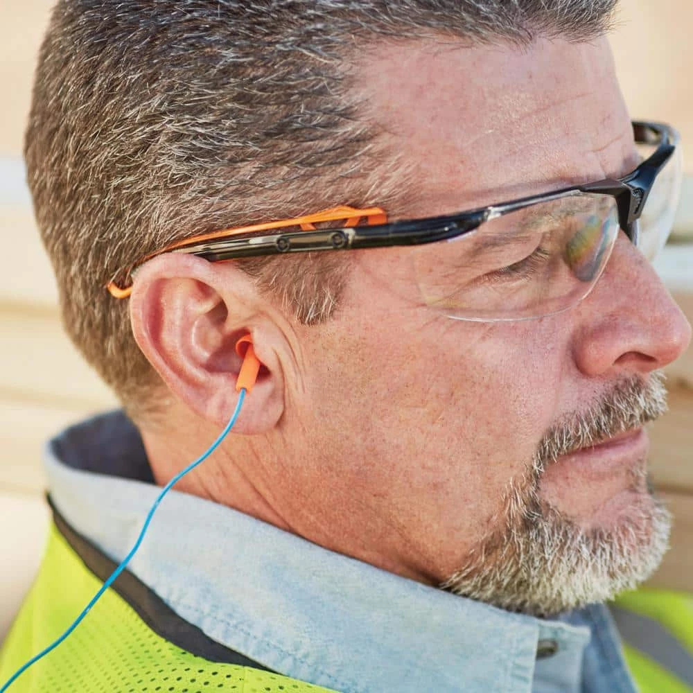 Soft TPR material for maximum comfort. Reusable and washable. Flange design for easy fitting and insertion. NRR 26 dB. Re-sealable storage case included.